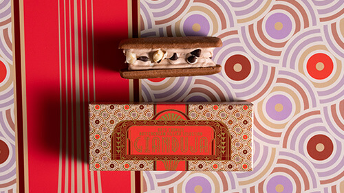 クッキー生地には、細かく刻んだレーズンを練り込み、ほんのり塩味をきかせたオーツクッキーを使用。豊かな風味と奥行きをもたらすこの生地が、「Huffnagel ならでは」の個性と味わいを生み出しています。サンドに使用するレーズンには、一般的なラムレーズンではなく、2種のブランデーに丁寧に漬け込んだ「特製レーズン」を使用。これは、50 年以上にわたり磨き上げてきた製法とともに、大切に守り続けてきた「伝統の味」でもあります。